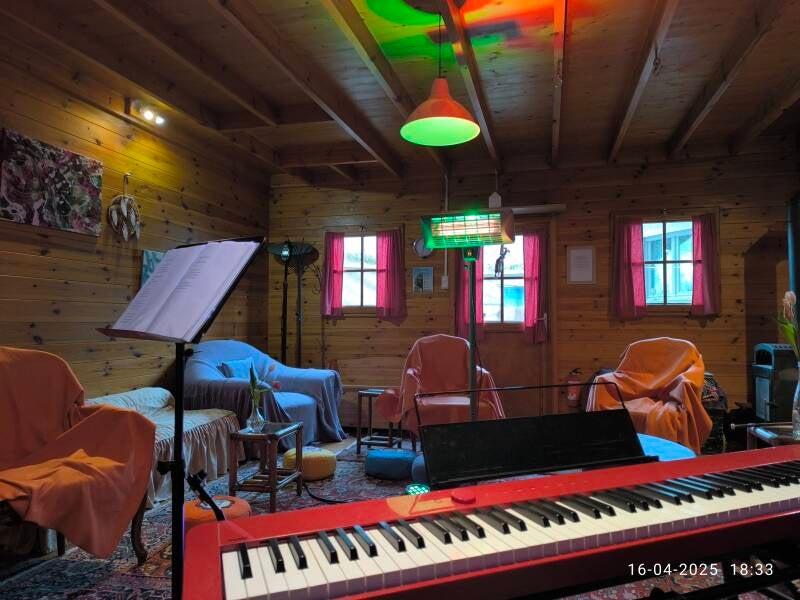 Ik breng mijn geluidsinstallatie en (electrische)piano mee. Ik speel een goed uur eigen, Nederlandstalige liedjes waartussen ik de dialoog aanga met de aanwezigen.
